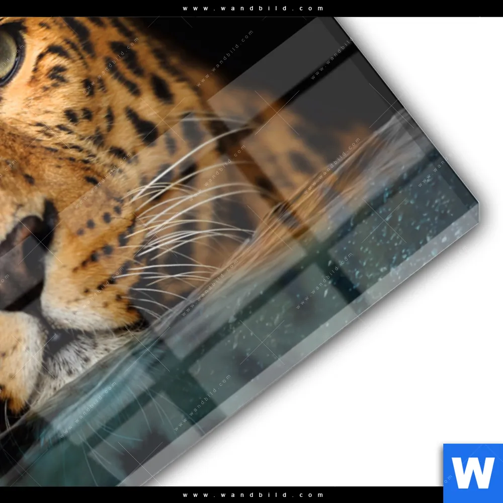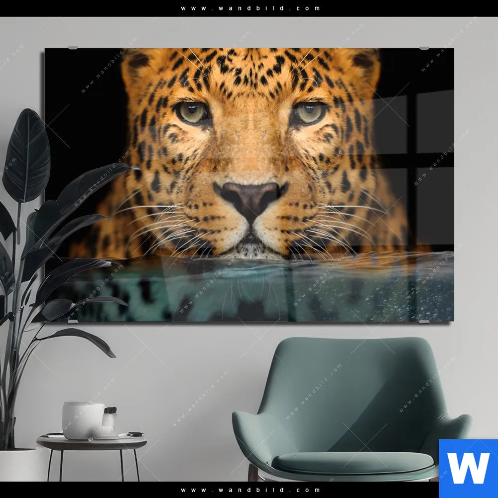 Acrylglasbild | Leopard im Wasser | Querformat