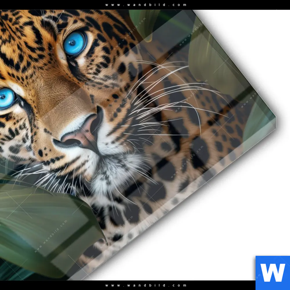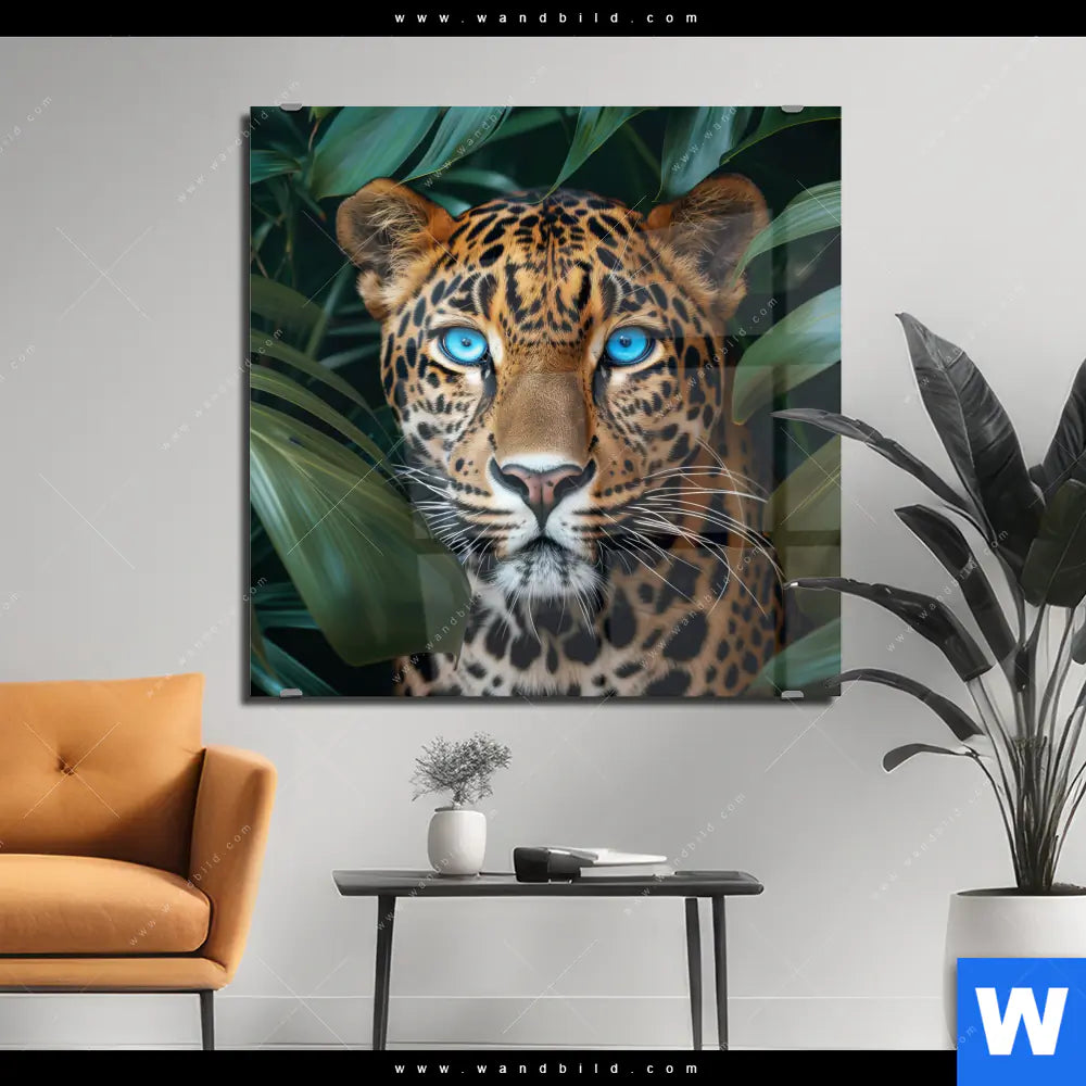 Acrylglasbild | Leopard mit blauen Augen | Quadrat
