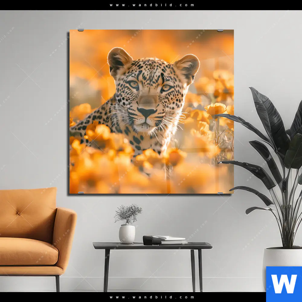 Acrylglasbild | Leopardentraum in Orange | Quadrat