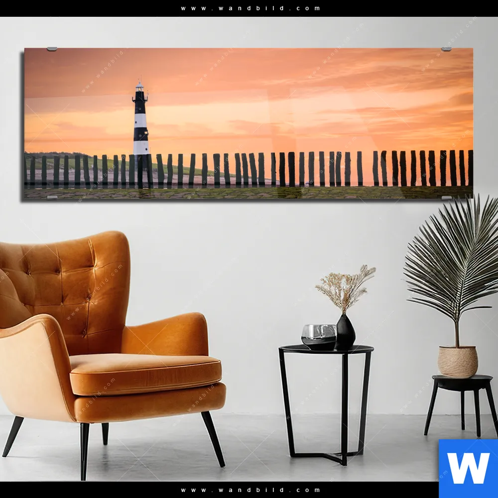 Acrylglasbild | Leuchtturm bei Sonnenuntergang | Panorama