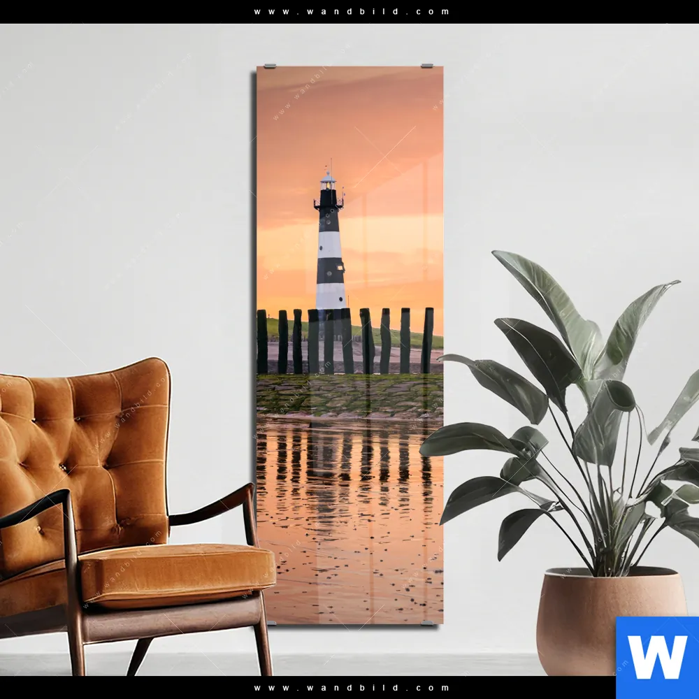 Acrylglasbild | Leuchtturm bei Sonnenuntergang | Schmal