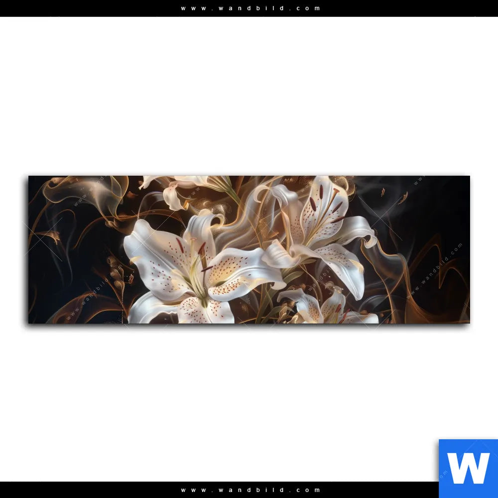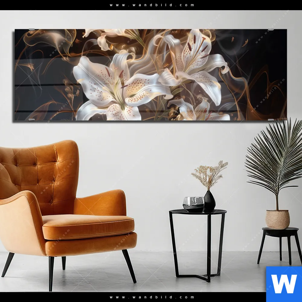Acrylglasbild | Lilien in goldenem Rauch | Panorama