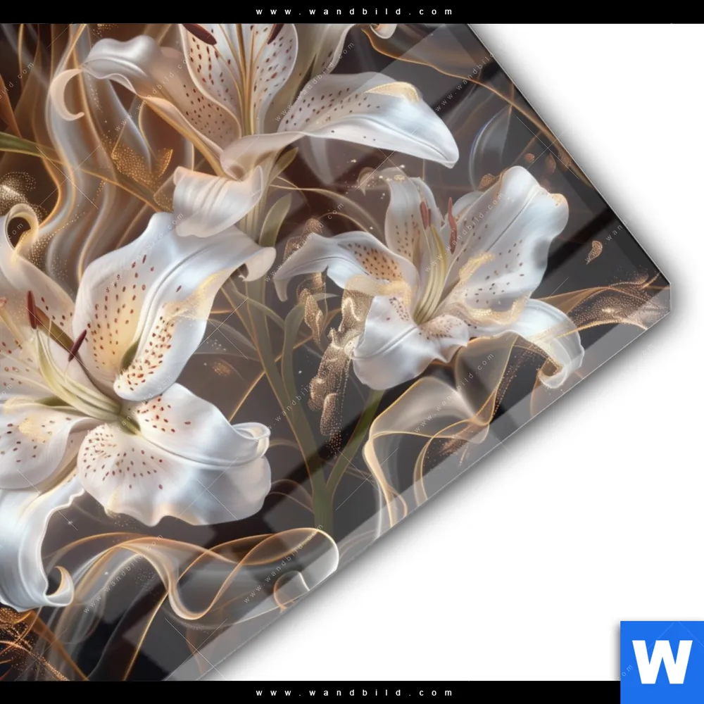 Acrylglasbild | Lilien in goldenem Rauch | Quadrat
