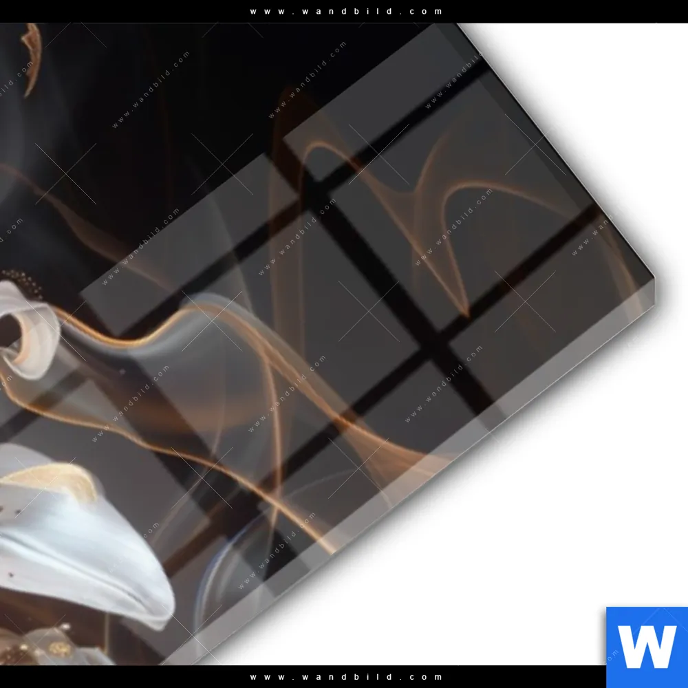 Acrylglasbild | Lilien in goldenem Rauch | Schmal
