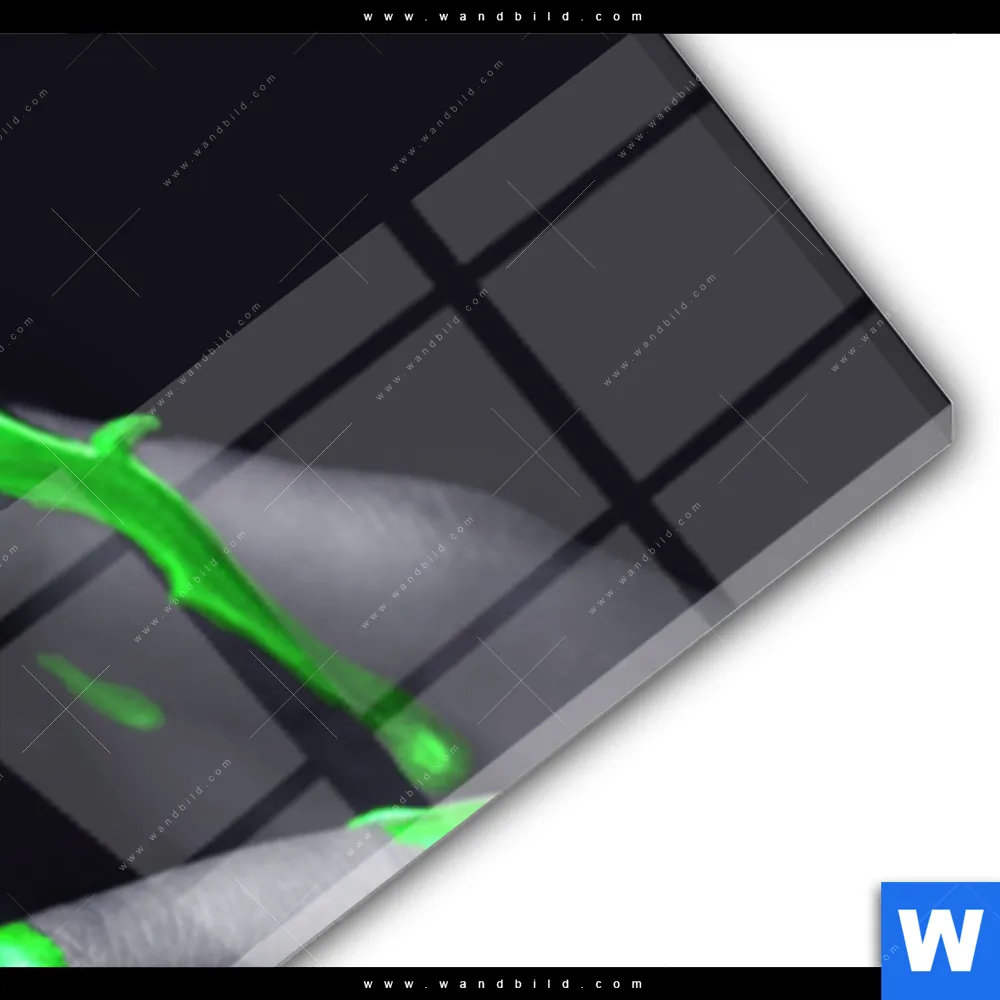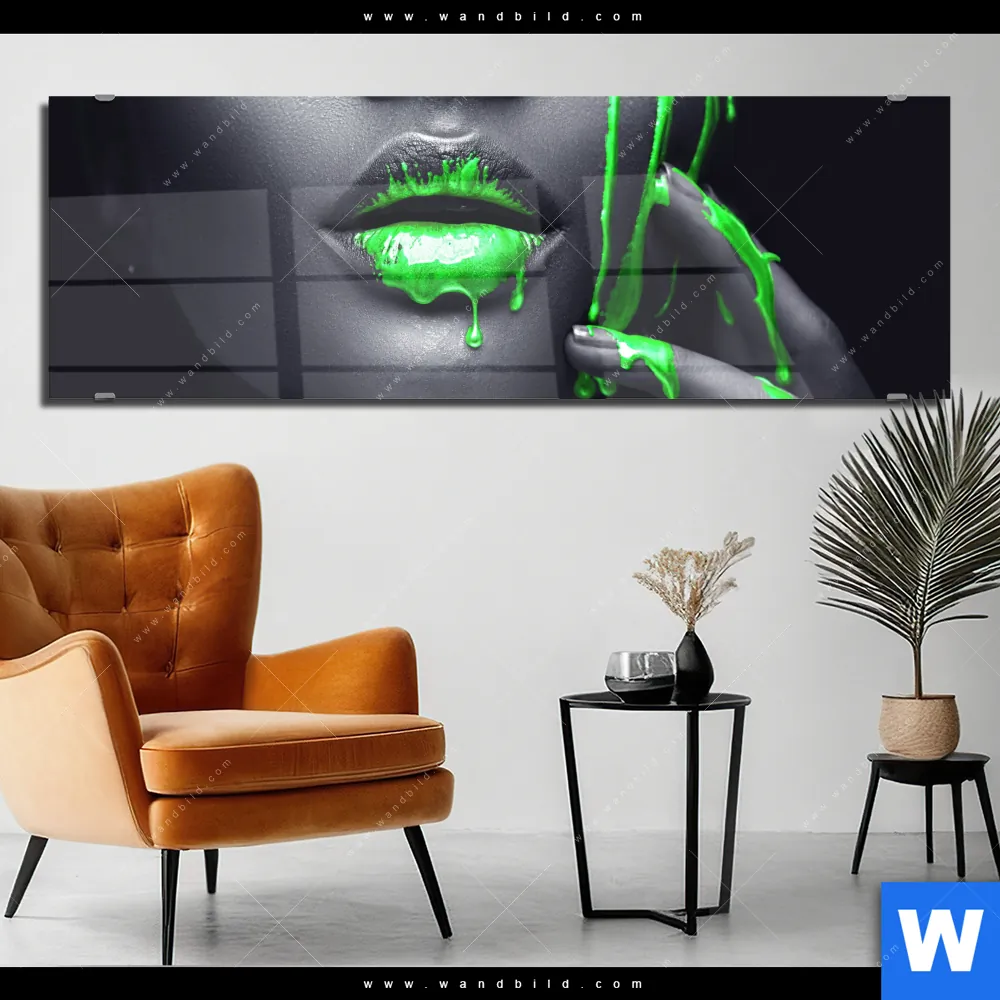 Acrylglasbild | Lippen Silber & Grün | Panorama