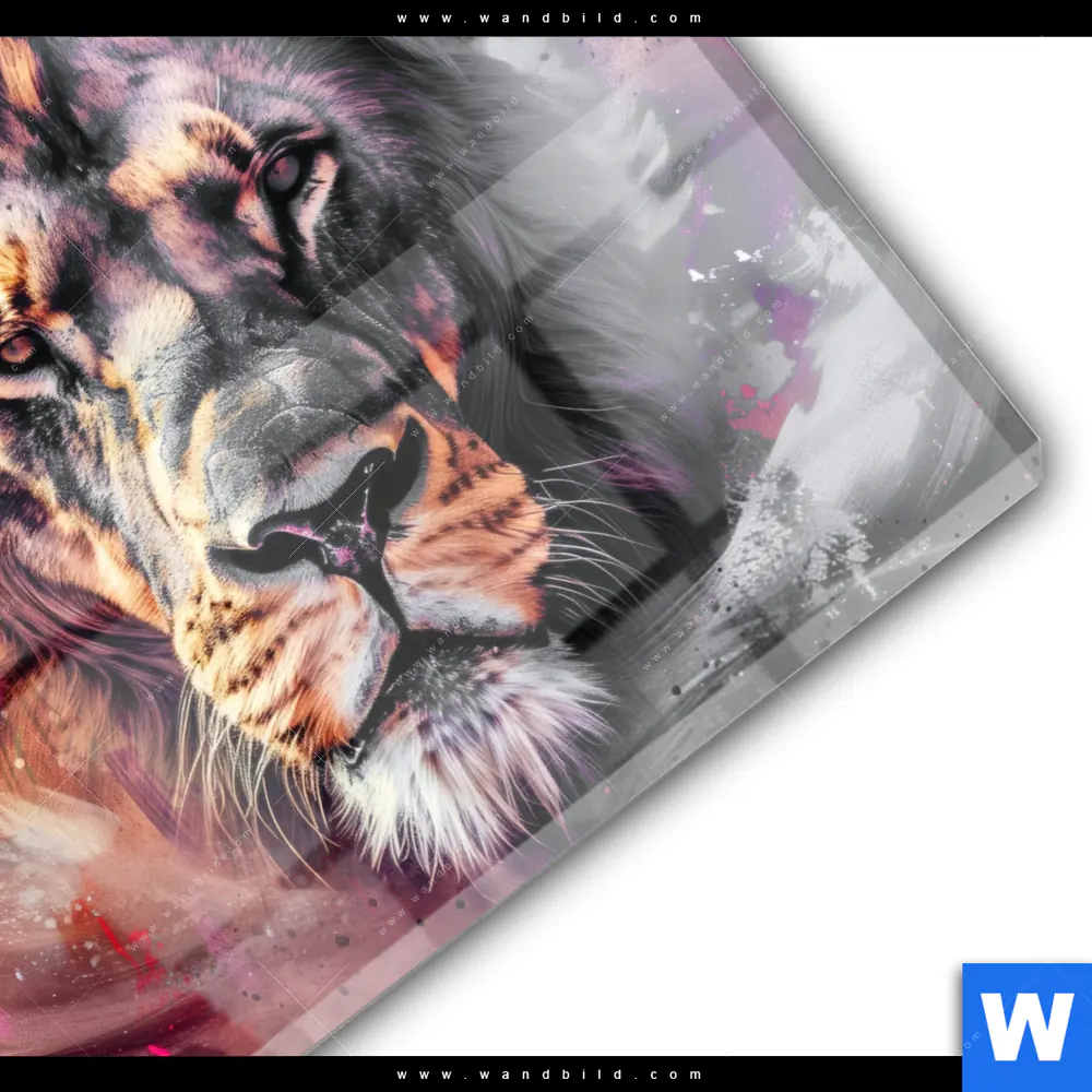 Acrylglasbild | Löwe im Farbensturm | Rund