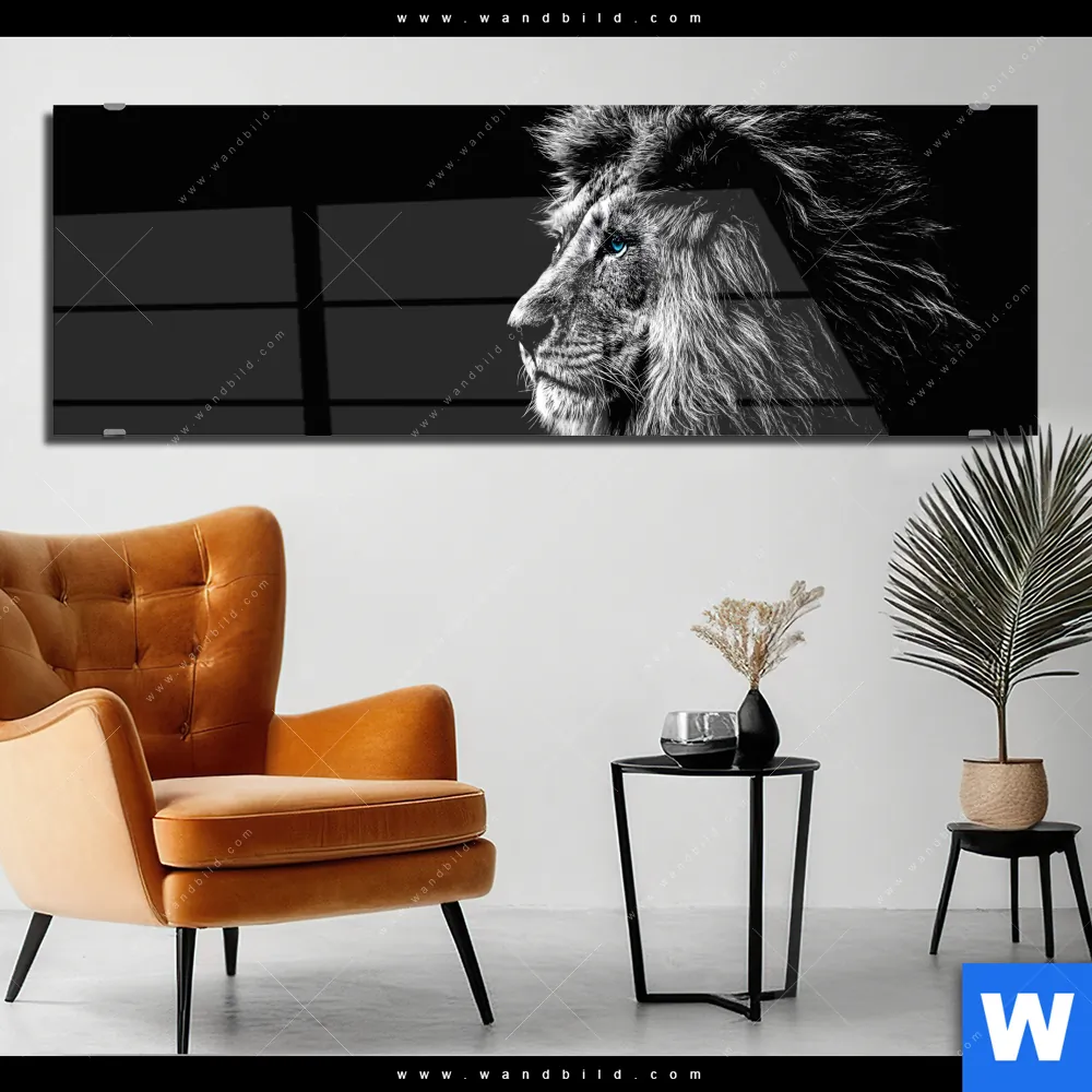 Acrylglasbild | Löwe mit blauen Augen | Panorama