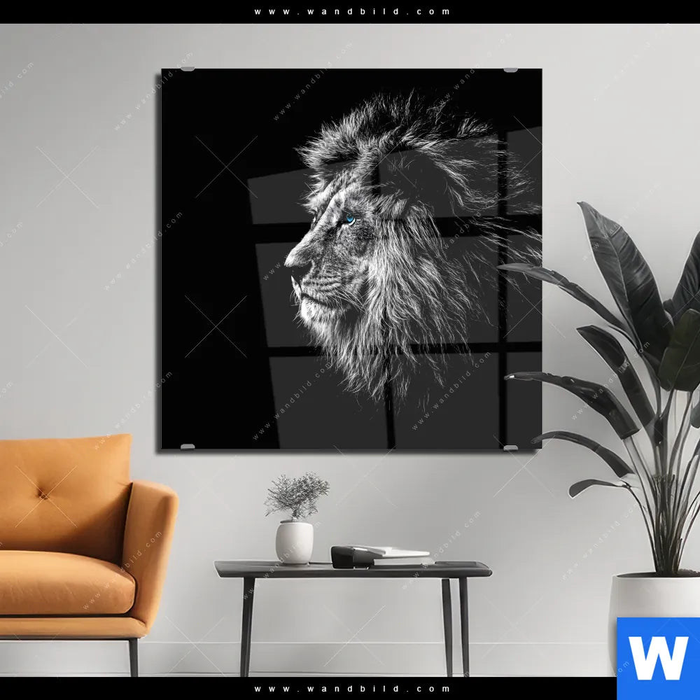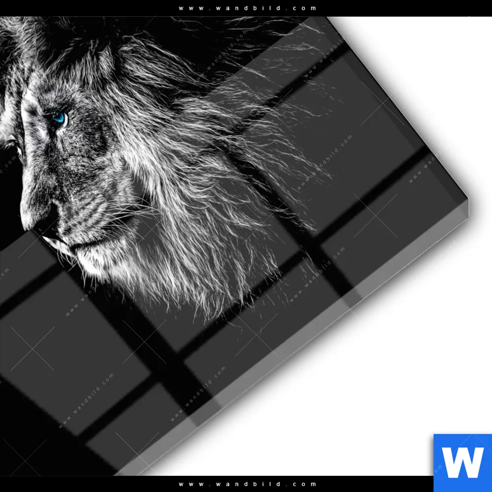 Acrylglasbild | Löwe mit blauen Augen | Quadrat