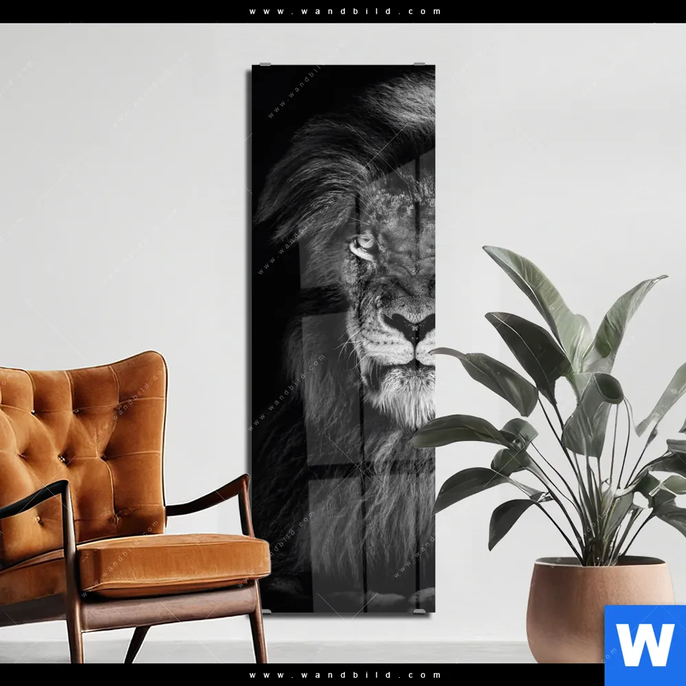 Acrylglasbild | Löwe Schwarzweiß | Schmal