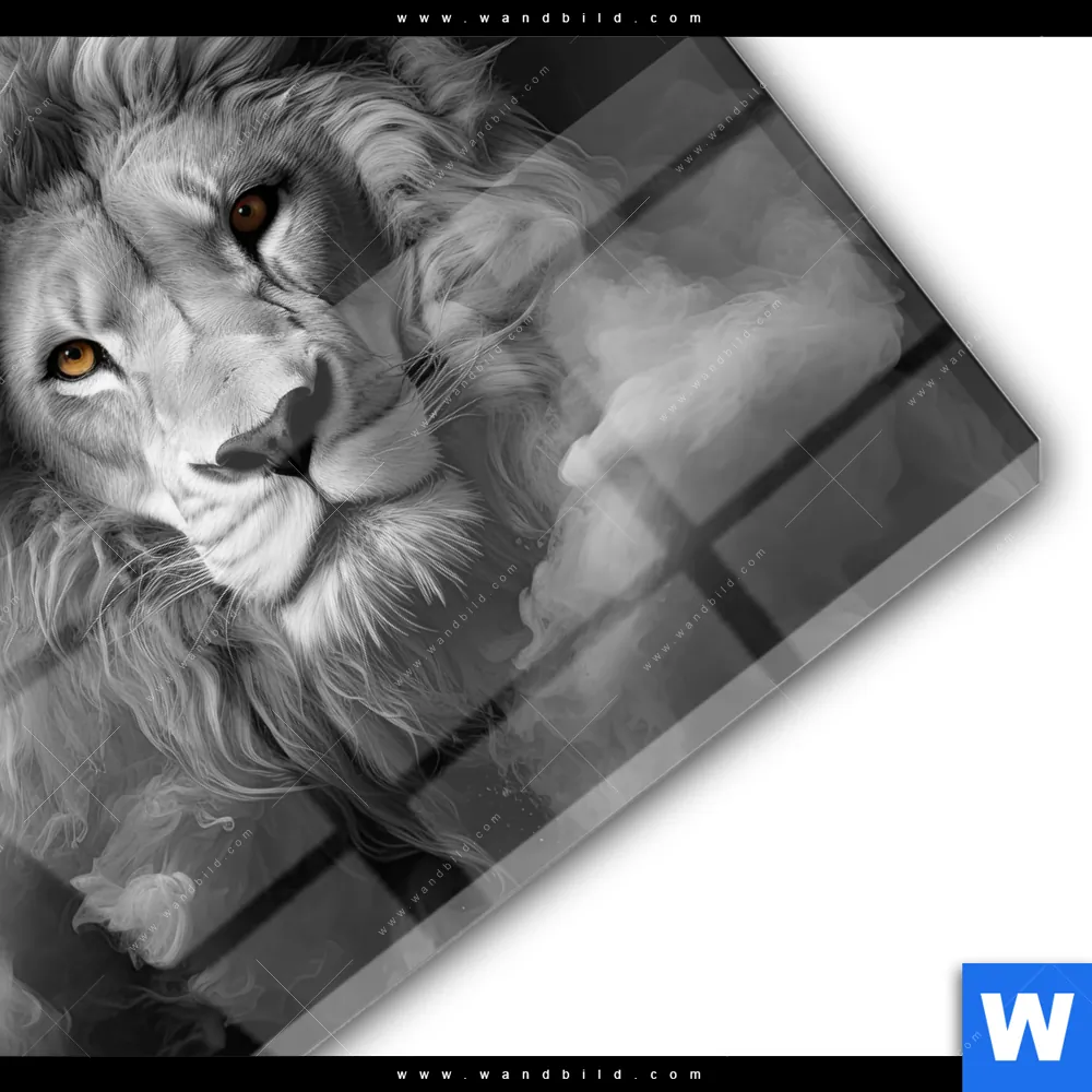 Acrylglasbild | Löwengesicht in Rauch | Rund
