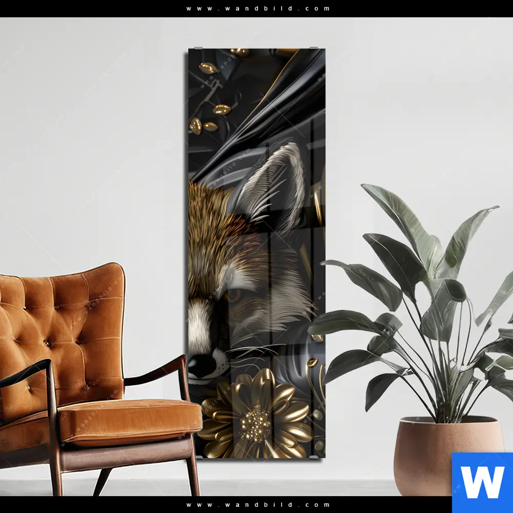 Acrylglasbild | Luxuriöser Fuchs mit Blumen | Schmal