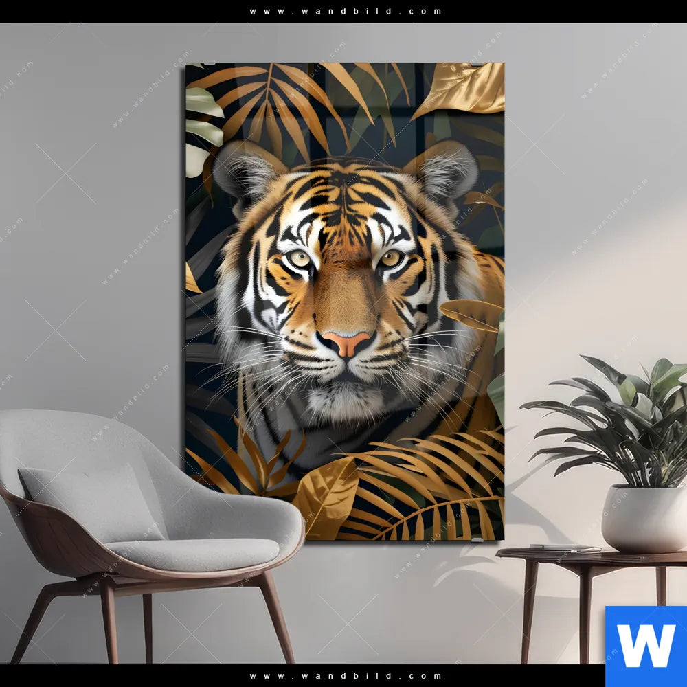 Acrylglasbild | Majestätischer Tiger im Dschungel | Hochformat