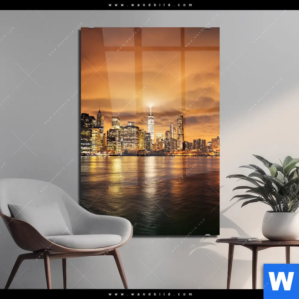 Acrylglasbild | Manhatten bei Sonnenuntergang | Hochformat