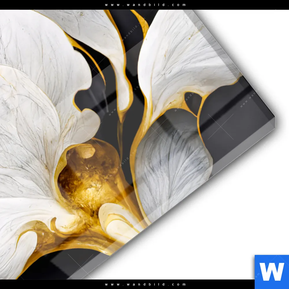 Acrylglasbild | Marmor Blüten in weiß & gold | Hochformat