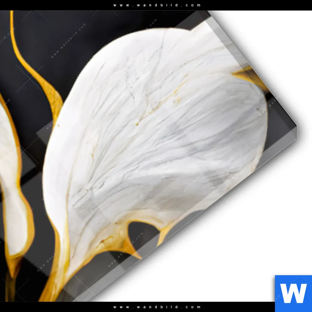 Acrylglasbild | Marmor Blüten in weiß & gold | Panorama