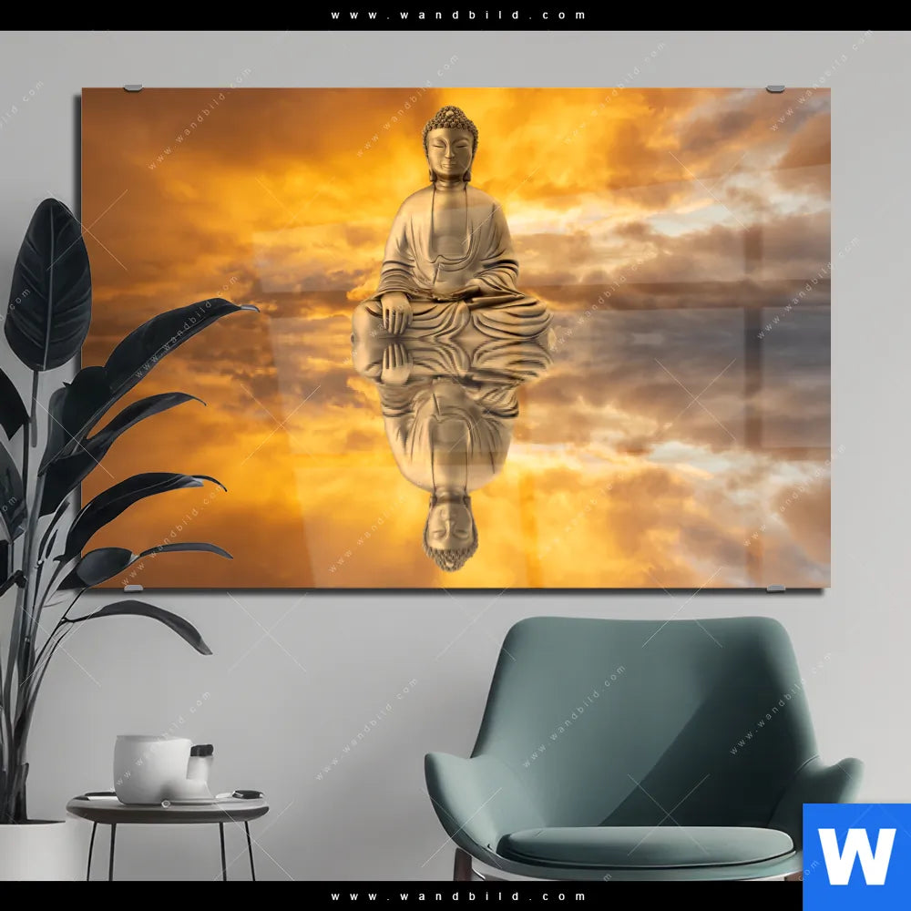 Acrylglasbild | Meditierender Buddha am See | Querformat