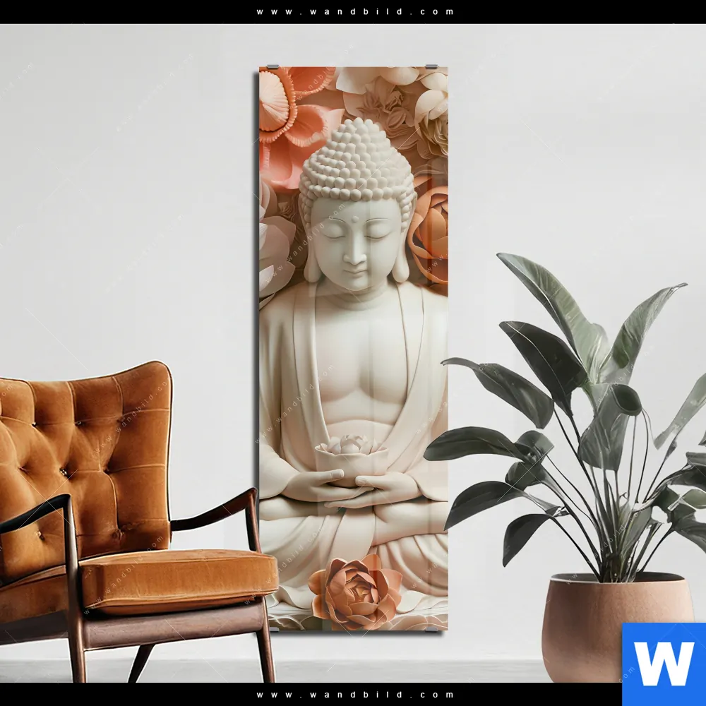 Acrylglasbild | Meditierender Buddha mit Blüten | Schmal