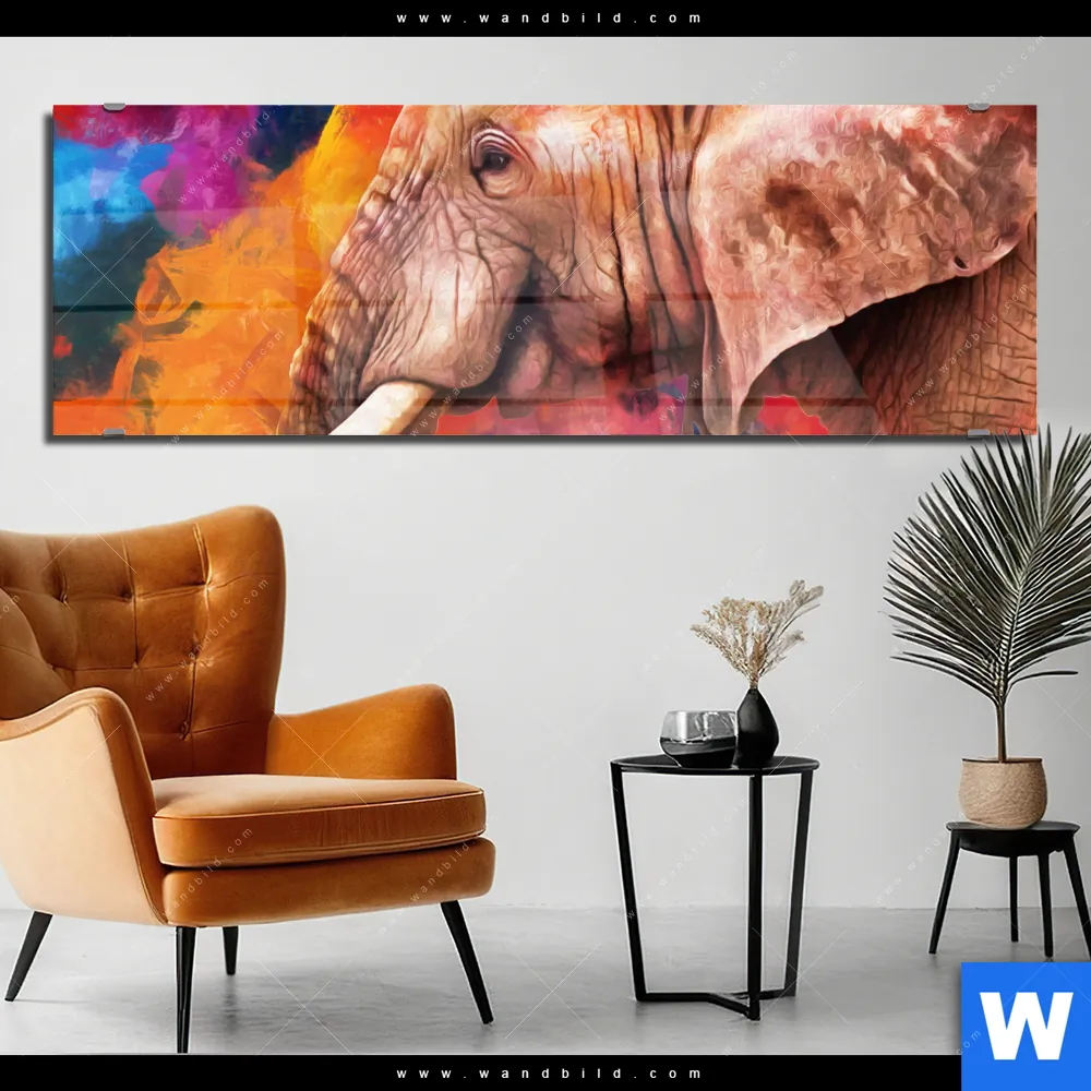 Acrylglasbild | Moderner Bunter Elefant | Panorama