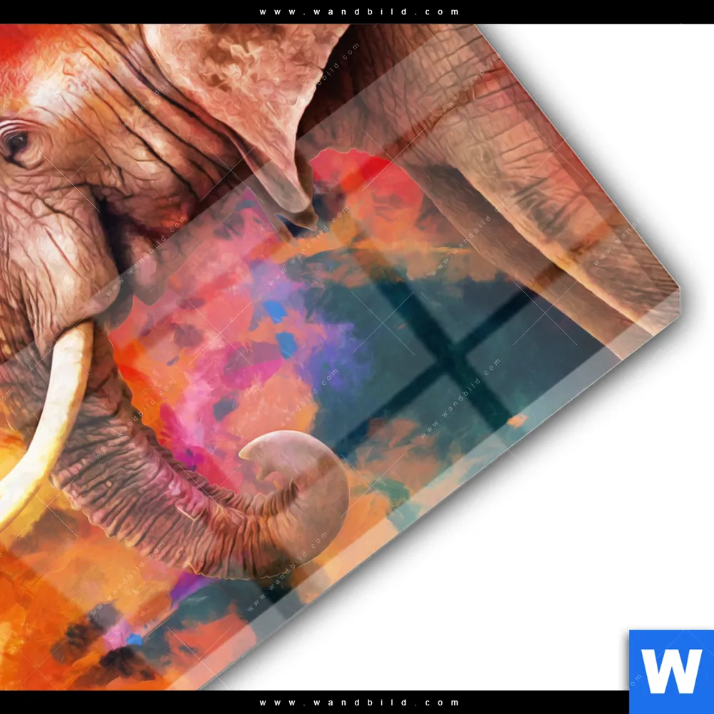 Acrylglasbild | Moderner Bunter Elefant | Quadrat