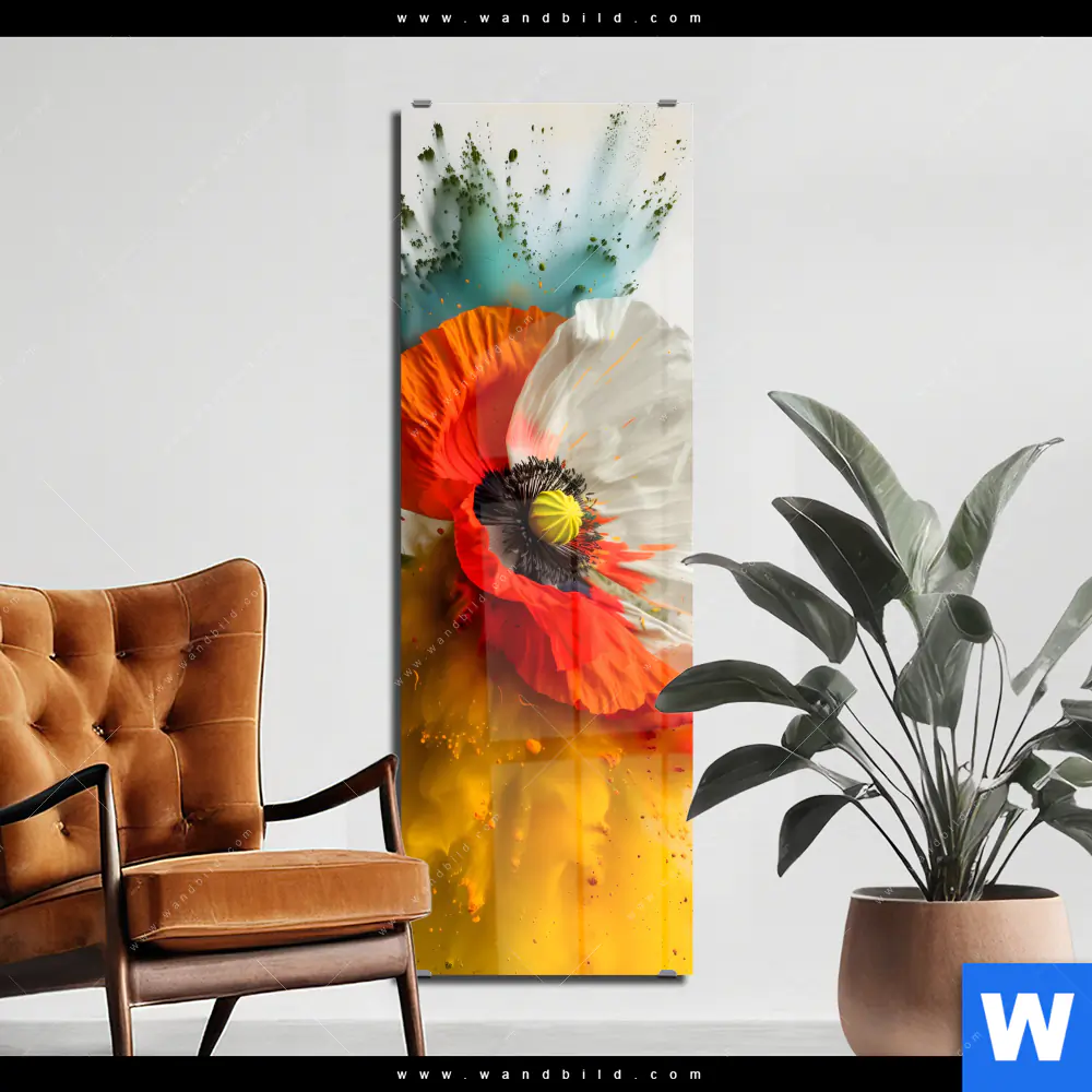 Acrylglasbild | Mohnblume im Farbnebel | Schmal