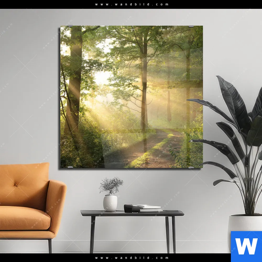 Acrylglasbild | Morgenspaziergang im nebeligem Wald | Quadrat