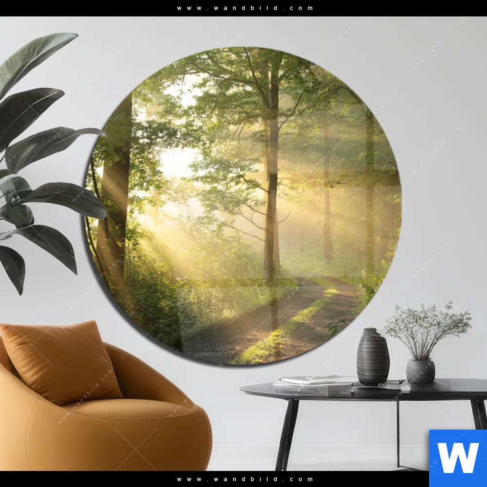 Acrylglasbild | Morgenspaziergang im nebeligem Wald | Rund