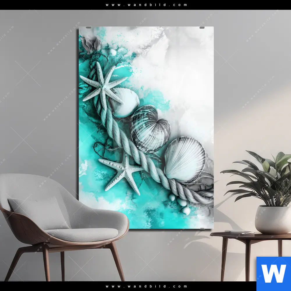Acrylglasbild | Muscheln-Meereszauber in Türkis | Hochformat