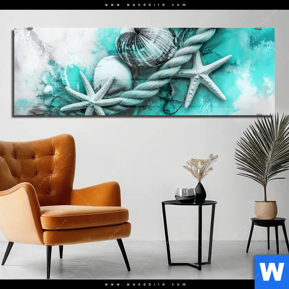 Acrylglasbild | Muscheln-Meereszauber in Türkis | Panorama