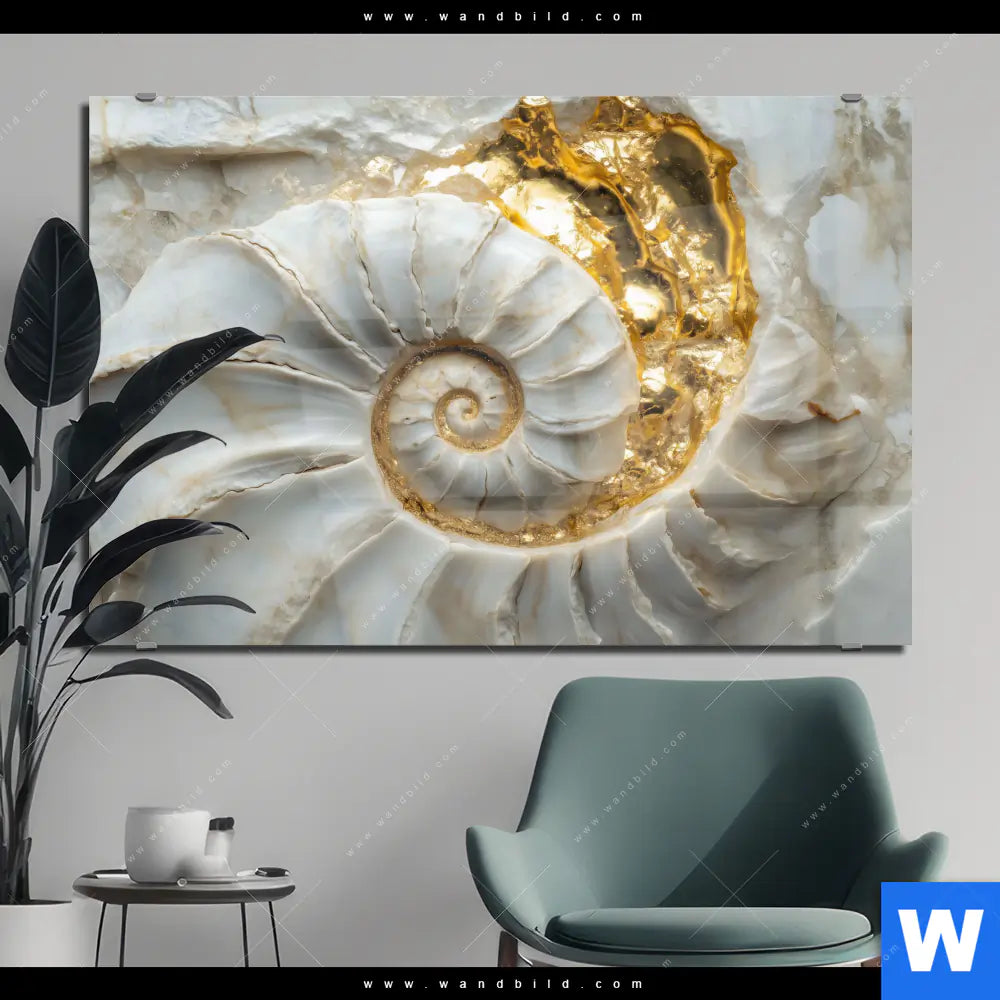 Acrylglasbild | Muschelspirale mit Gold | Querformat