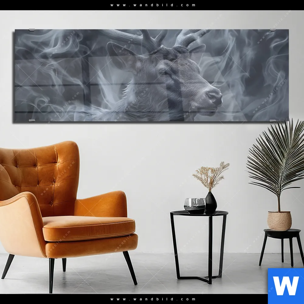 Acrylglasbild | Mystischer Hirsch im Nebel | Panorama
