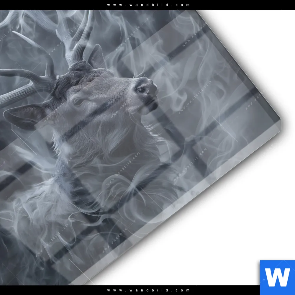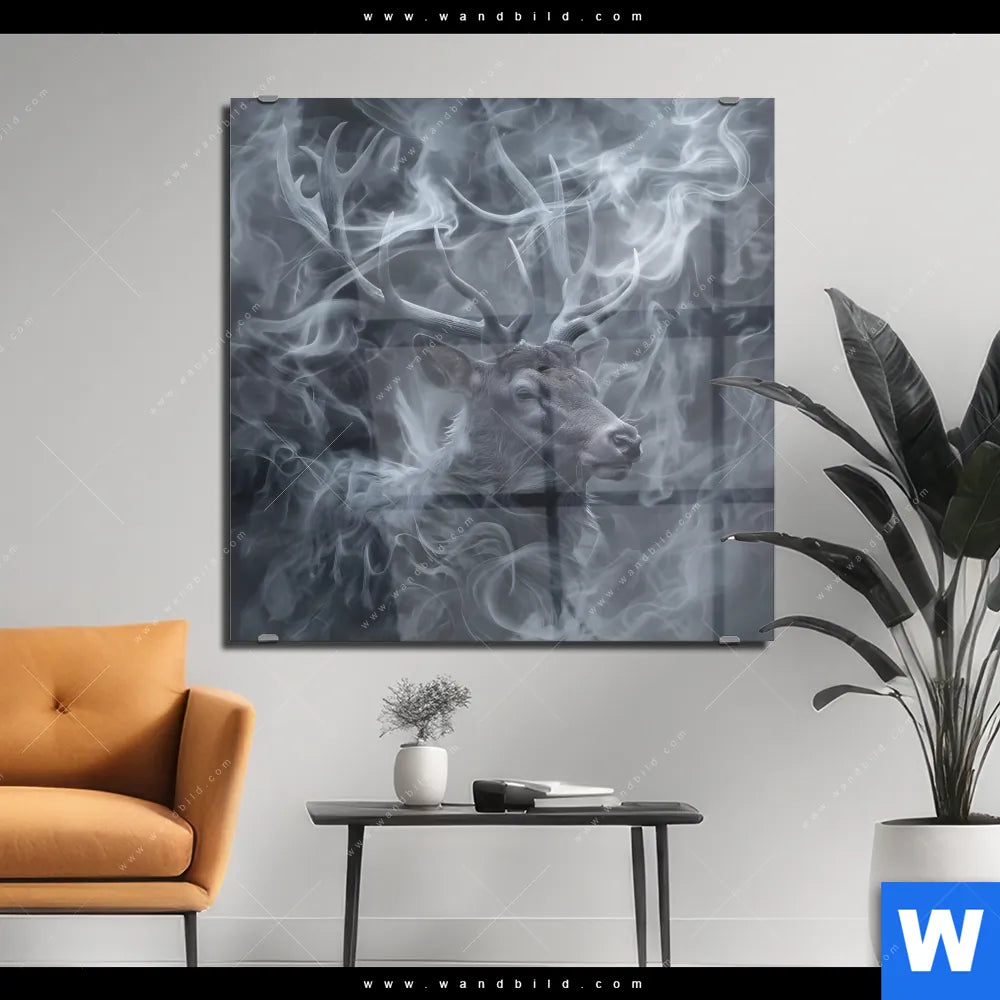 Acrylglasbild | Mystischer Hirsch im Nebel | Quadrat