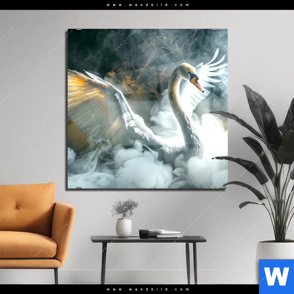 Acrylglasbild | Mystischer Schwan im Nebel | Quadrat