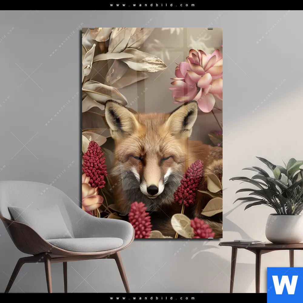 Acrylglasbild | Naturbild Fuchs und Blumen | Hochformat