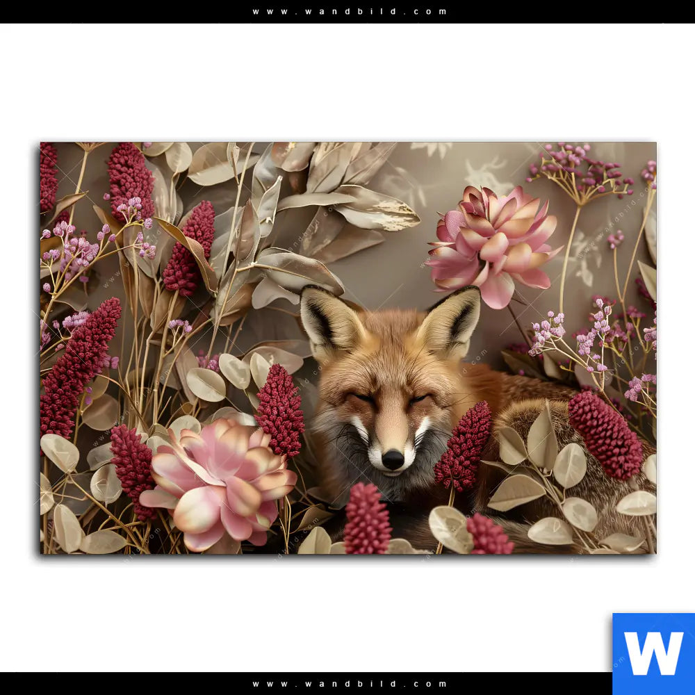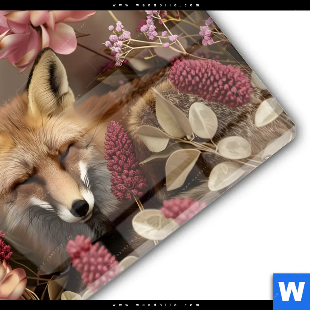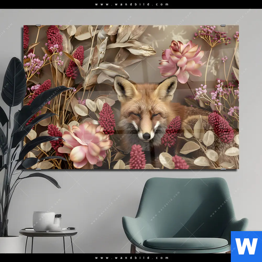 Acrylglasbild | Naturbild Fuchs und Blumen | Querformat