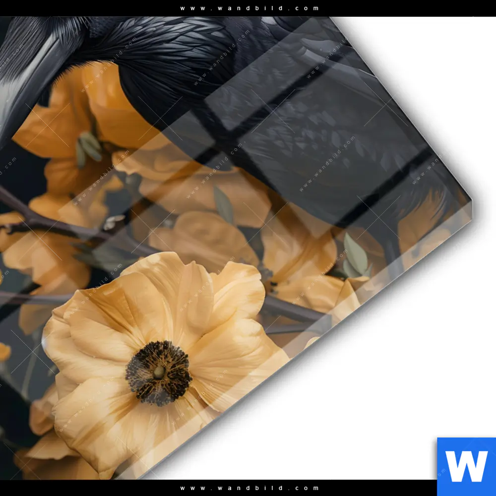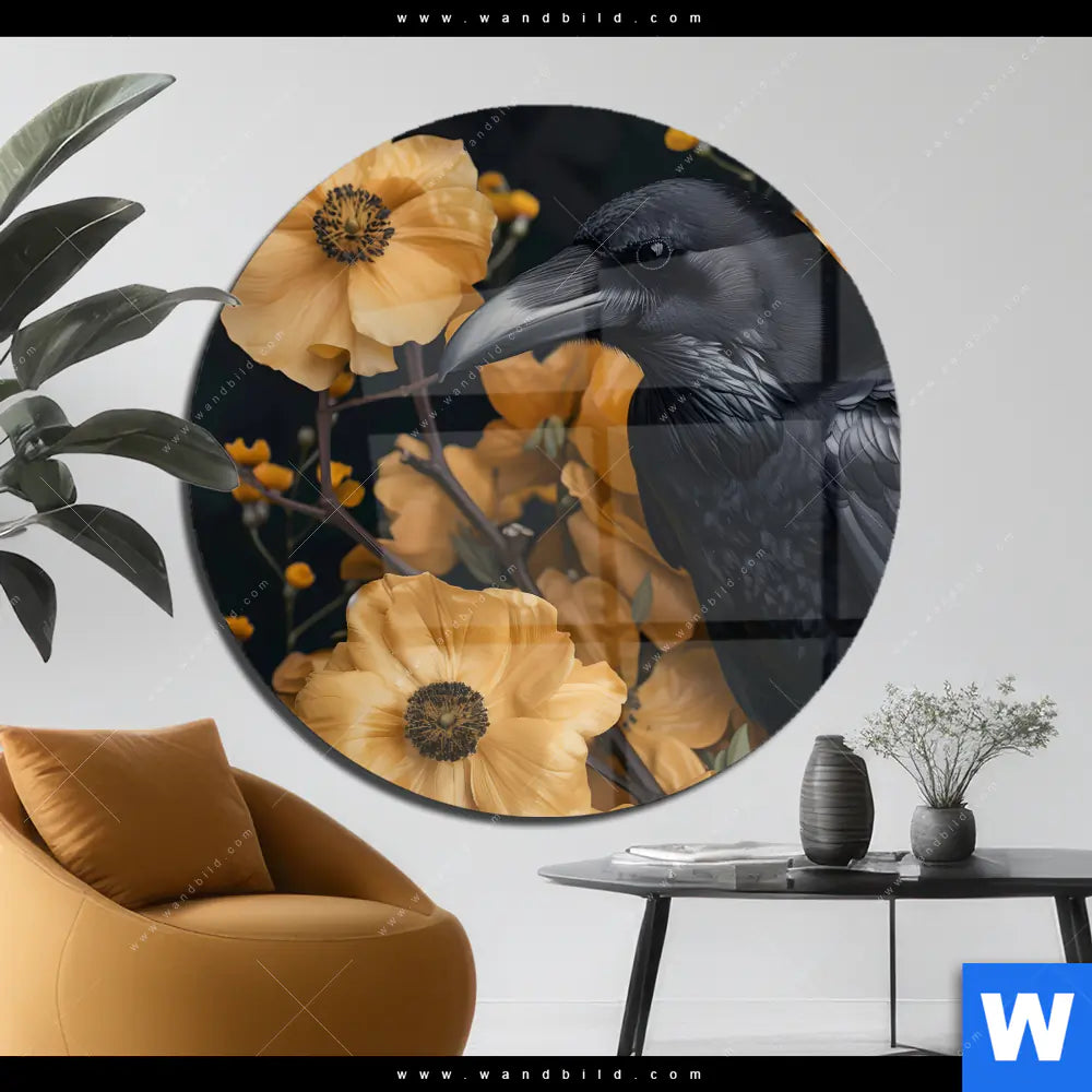 Acrylglasbild | Naturbild - Rabe & Blüten | Rund
