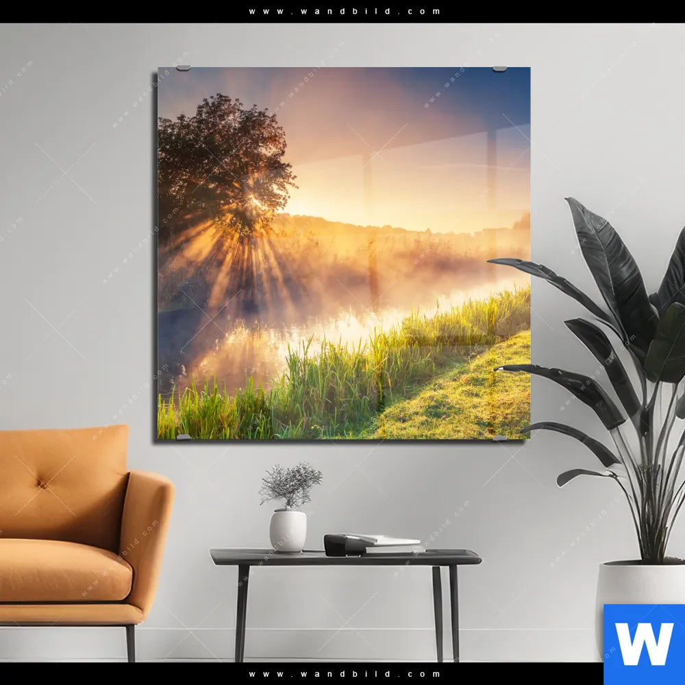 Acrylglasbild | Nebel am Fluss | Quadrat