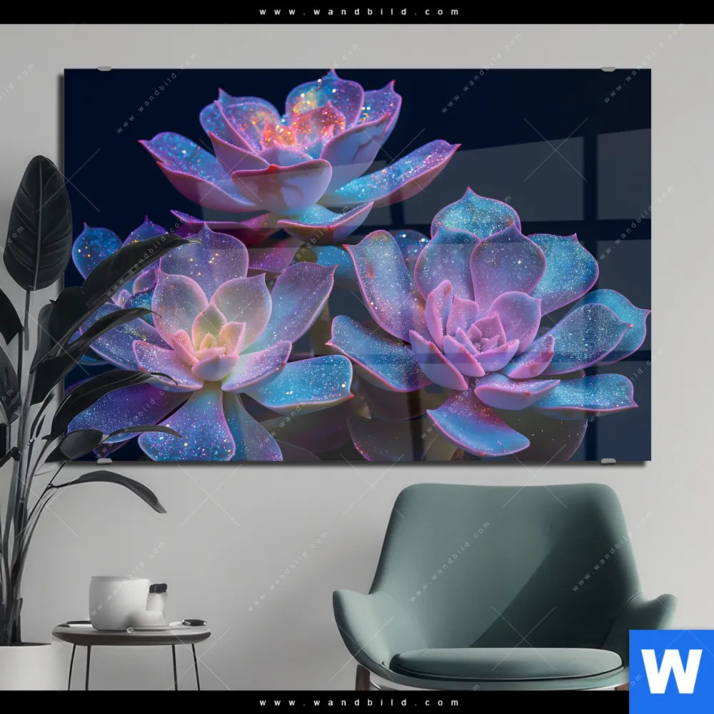 Acrylglasbild | Neon Sukkulenten | Querformat
