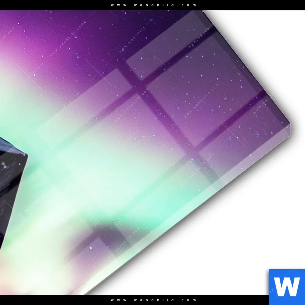 Acrylglasbild | Nordlichter über einem Holzhaus | Hochformat