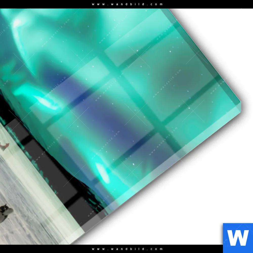 Acrylglasbild | Nordlichter und Schlittenhunde | Hochformat