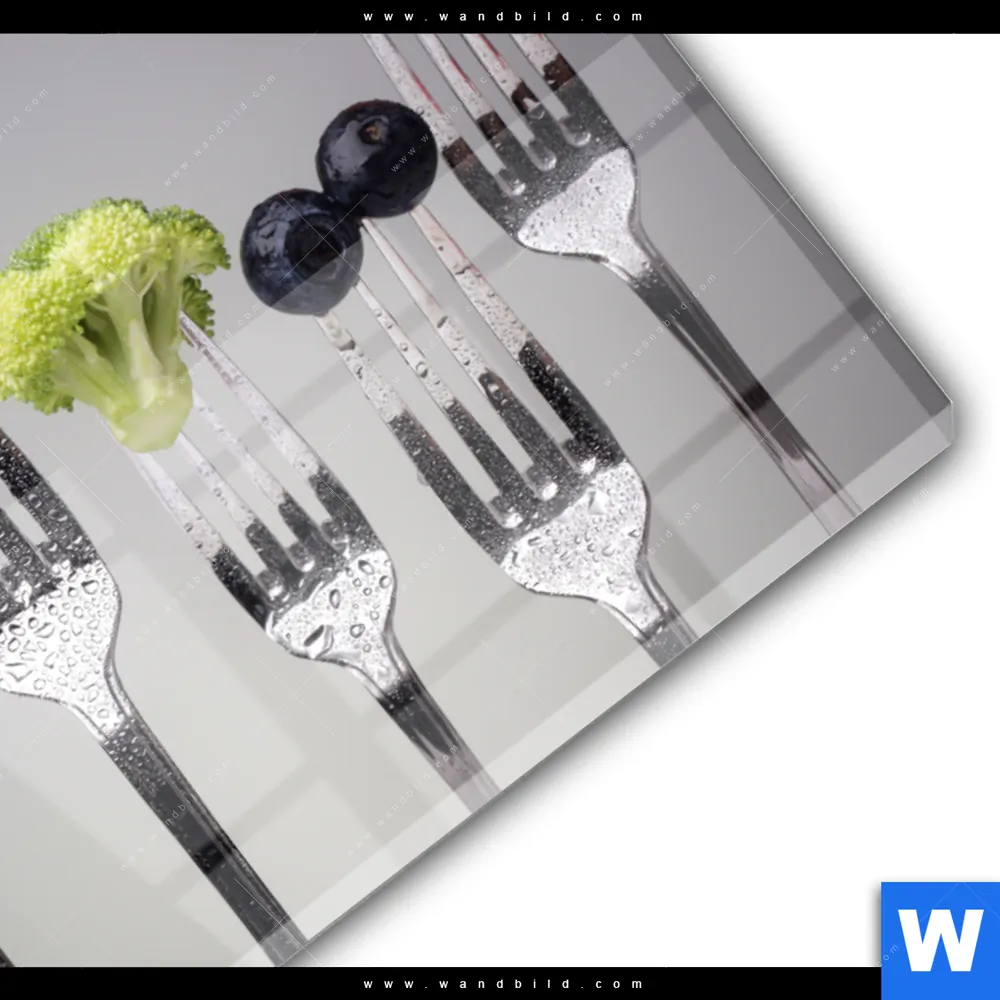 Acrylglasbild | Obst & Gemüse auf Gabeln | Querformat