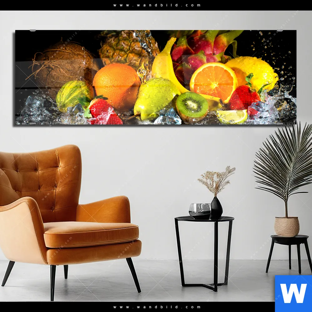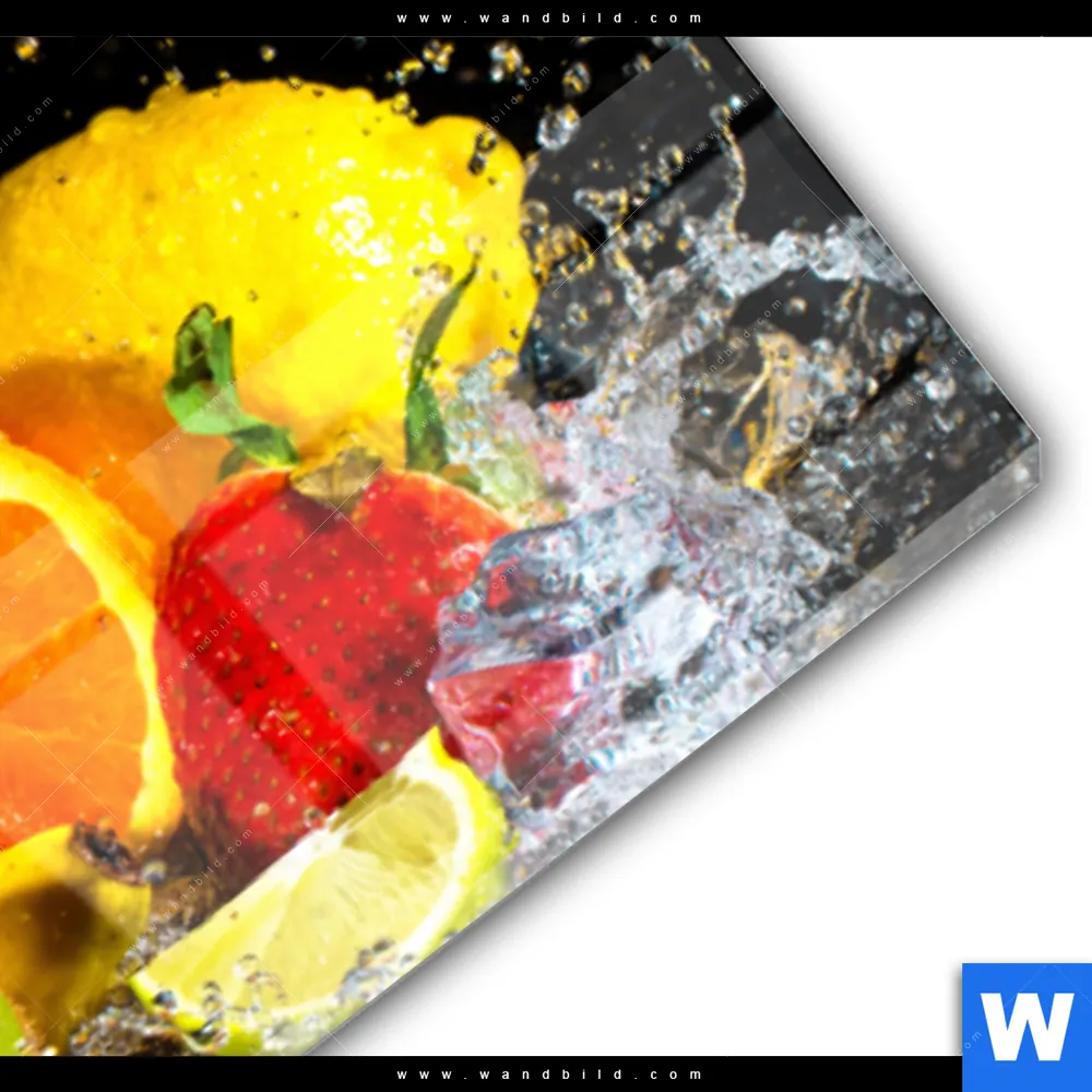 Acrylglasbild | Obst-in spritzendem Wasser | Panorama