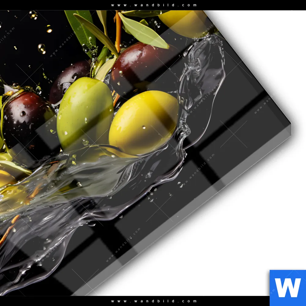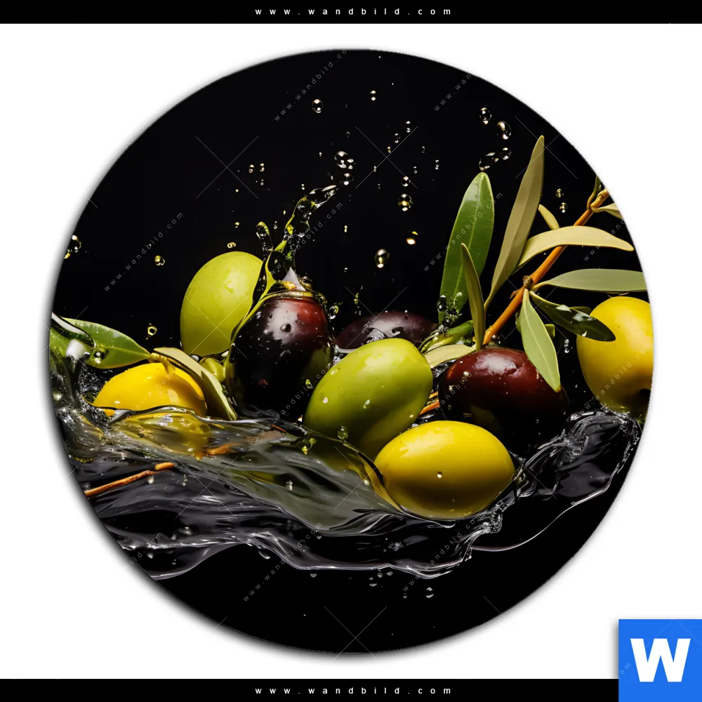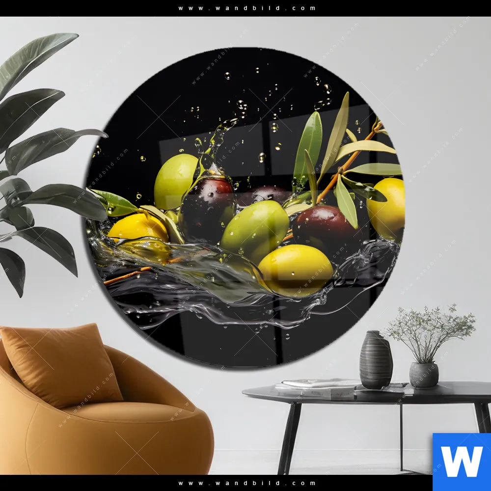 Acrylglasbild | Oliven Splash | Rund