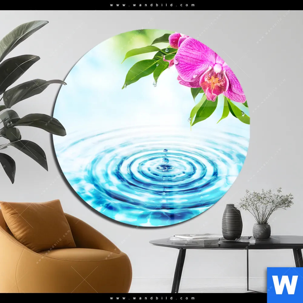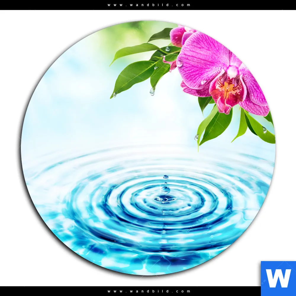 Acrylglasbild | Orchidee & Wassertropfen | Rund