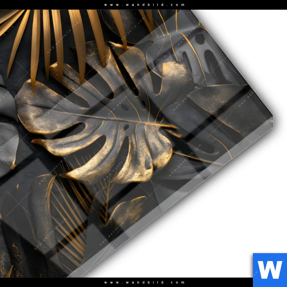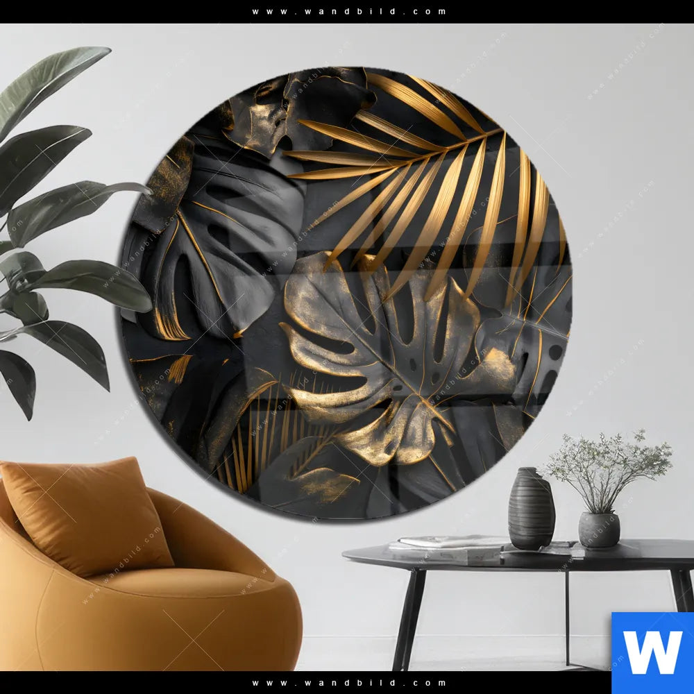 Acrylglasbild | Palmenblätter Schwarz Gold | Rund