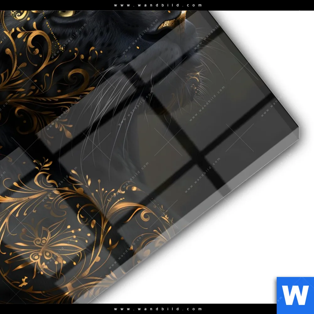 Acrylglasbild | Panther mit goldenen Ornamenten | Quadrat