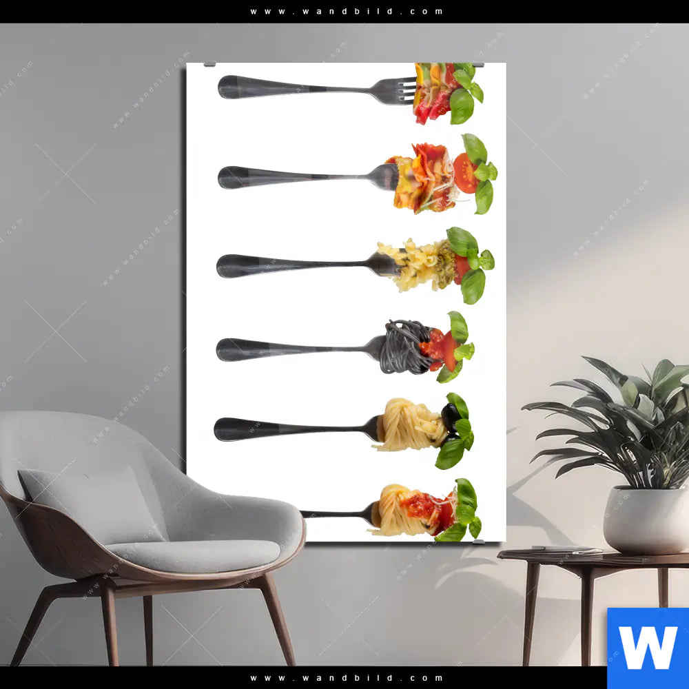 Acrylglasbild | Pasta auf Gabeln | Hochformat