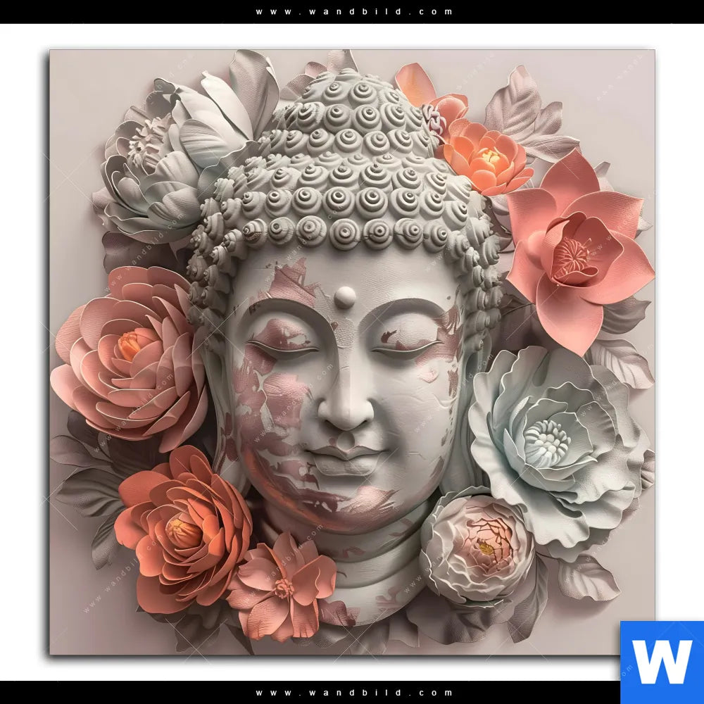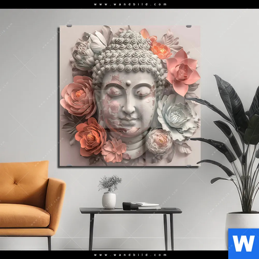 Acrylglasbild | Pastellblüten und Buddha | Quadrat