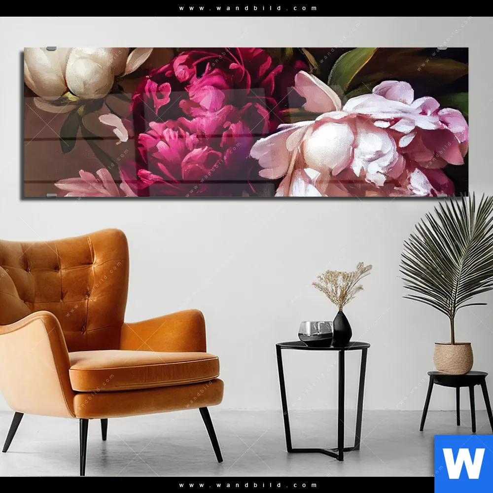 Acrylglasbild | Pfingstrosen im Barockstil | Panorama