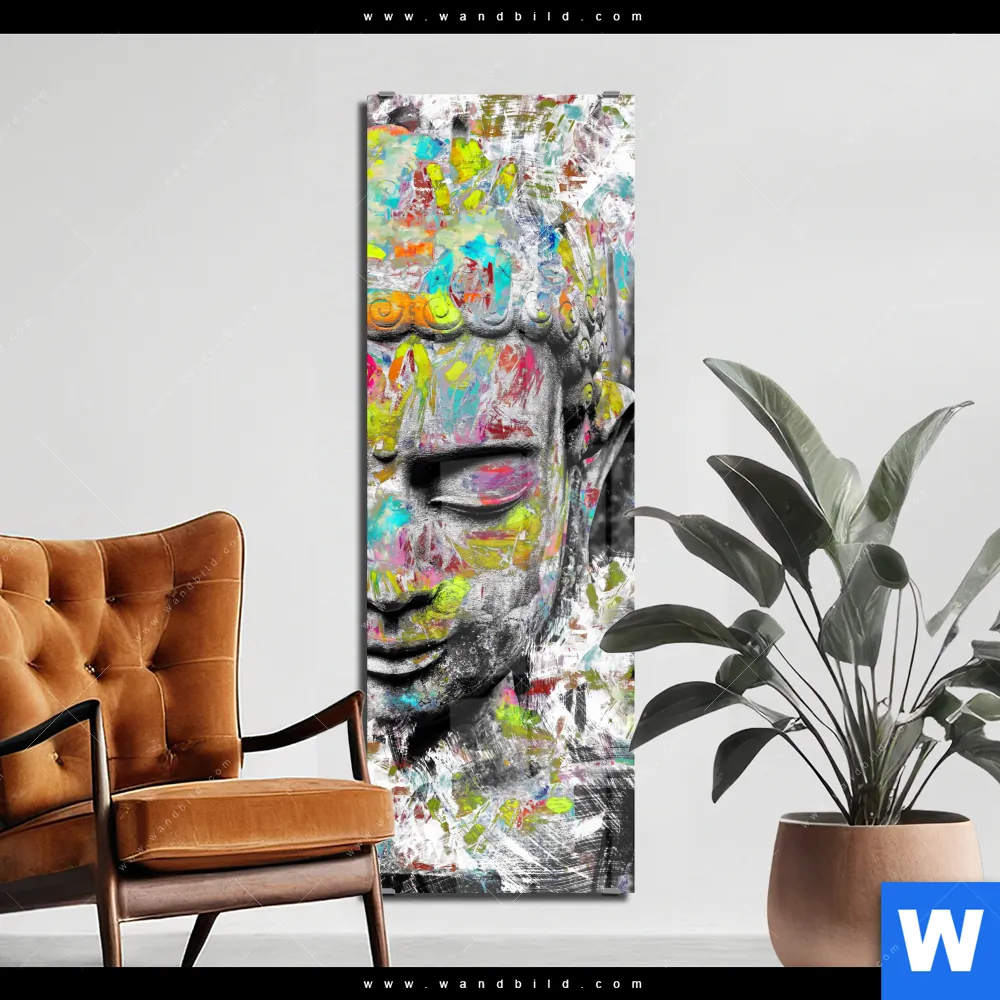 Acrylglasbild | Pop Art Buddha Kopf | Schmal