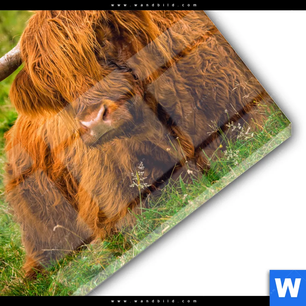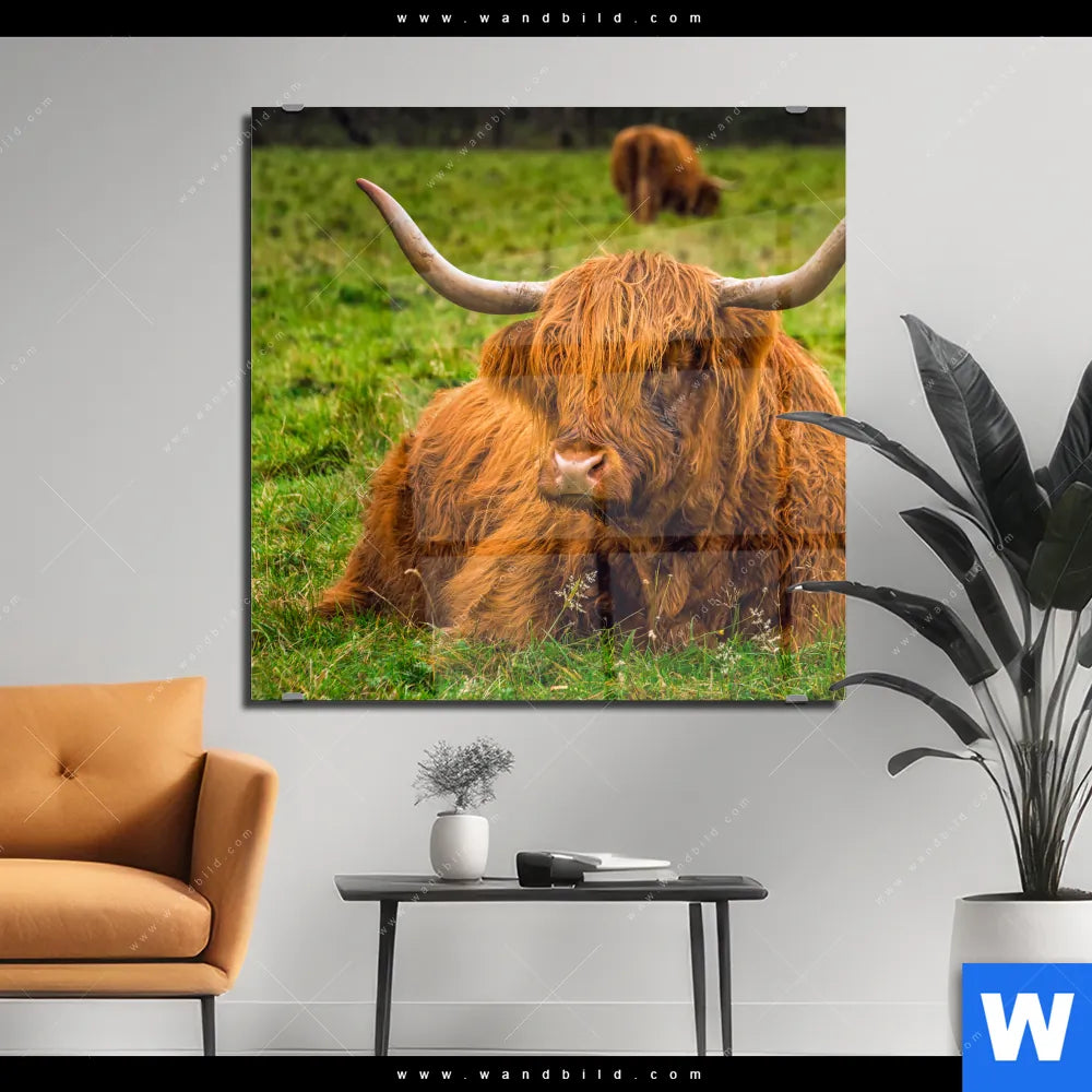 Acrylglasbild | Rind in den schottischen Highlands | Quadrat